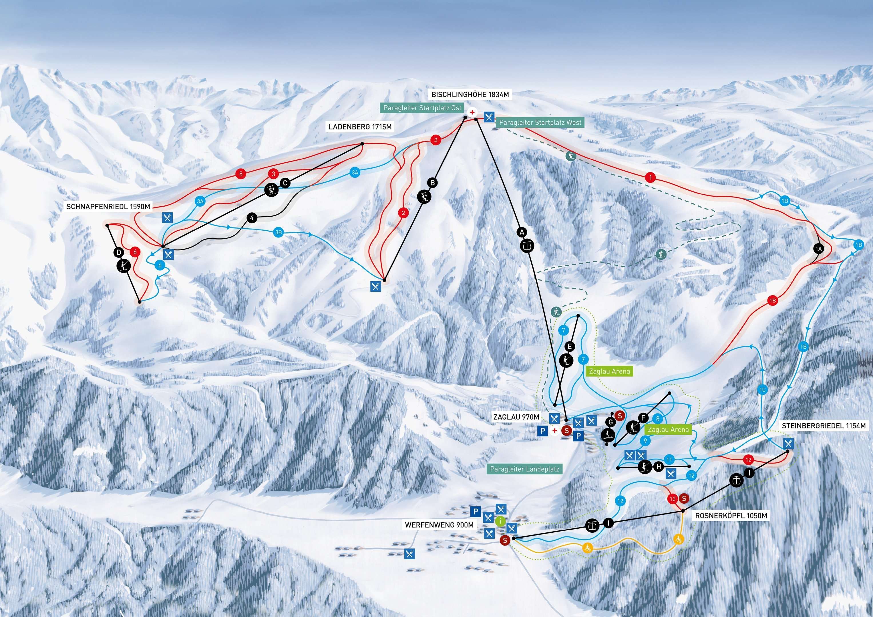 Die Ikarus-Bergbahn startet in Werfenweng und bringt Gäste auf die Bischlinghöhe (≈ 1.800–1.850 m). Von dort eröffnen sich spektakuläre Panoramawanderungen, Gipfeltouren und Almspaziergänge im Sommer sowie präparierte Skipisten, Snowpark und Winterwanderwege im Winter. Die moderne Bergbahn bietet so sowohl Familien als auch Abenteurern ganzjährig ein abwechslungsreiches Berg-Erlebnis.